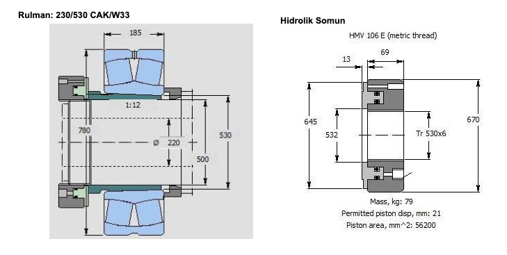 Rulman montajı SKF Drive-Up yöntemi ile yapılmış, hidrolik basınç ile çalışan SKF HMV serisi hidrolik somun kullanılmıştır.